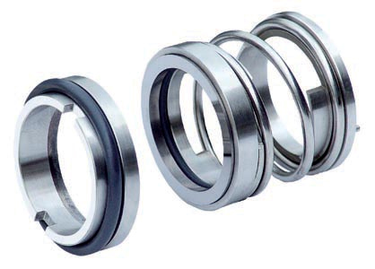 主要有以下四類部件。a.主要部件:動環(huán)和靜環(huán)。b.輔助密封件:密封圈(有O形、X形、U型、楔形、矩形柔性石墨、PTFE包覆橡膠O圈等)。c.彈力補償機構(gòu):彈簧、推環(huán)。d.傳動件:彈箕座及鍵或各種螺釘。集裝式機械密封