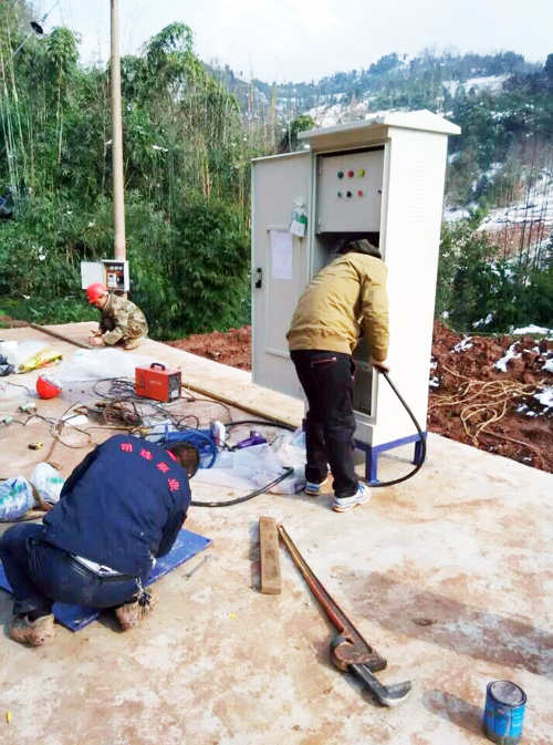 我司供貨天全水務(wù)局優(yōu)質(zhì)深井泵提灌泵站安裝現(xiàn)場