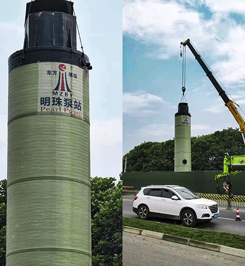 我司玻璃鋼一體化預(yù)制泵站雨污水收集提升成都市政工程吊裝安裝施工現(xiàn)場!