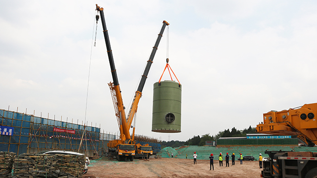 我司直徑7.5米大型一體化預(yù)制泵站應(yīng)用成都2024園藝博覽會(huì)安裝現(xiàn)場(chǎng)!