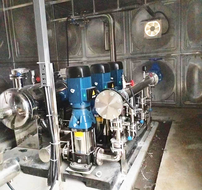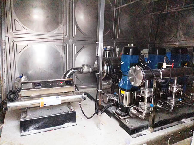 我司不銹鋼一體式水箱機組供水設備安裝應用重慶國防教育基地!
