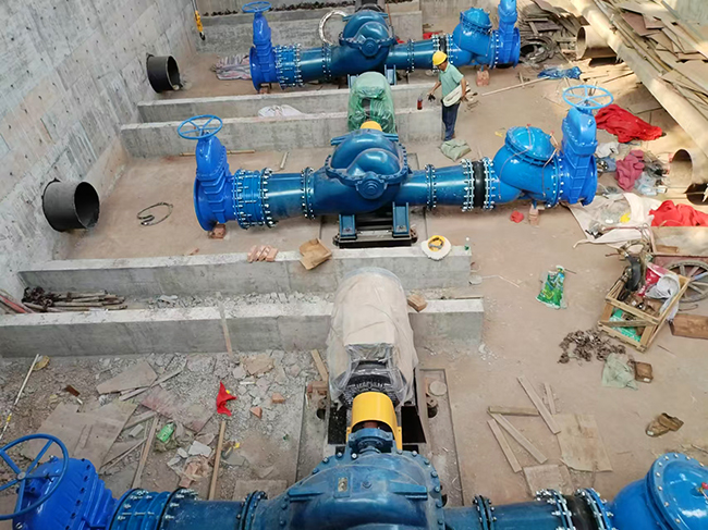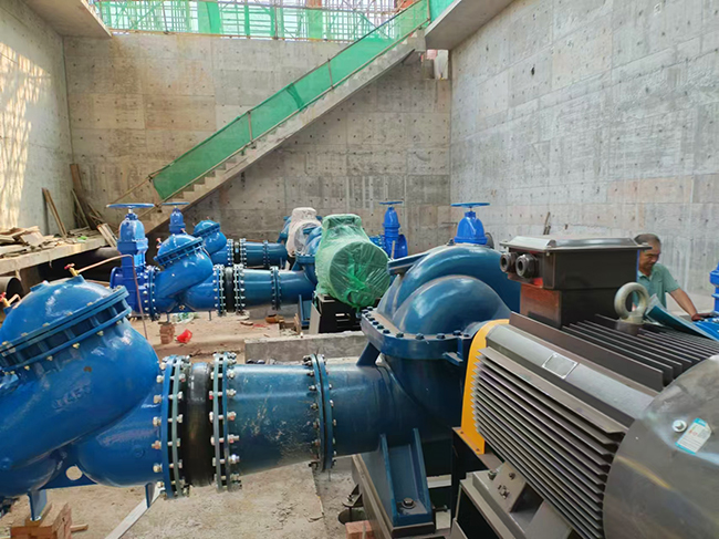 我司大流量供水雙吸離心泵安裝資陽(yáng)軌道交通建設(shè)!