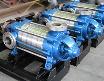 D型系列多級離心泵主要零件有:進水段、中段、出水段、葉輪、導翼擋板、出水段導翼、軸、密封環(huán)、平衡環(huán)、軸套、尾蓋及軸承體。