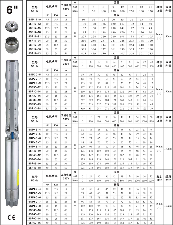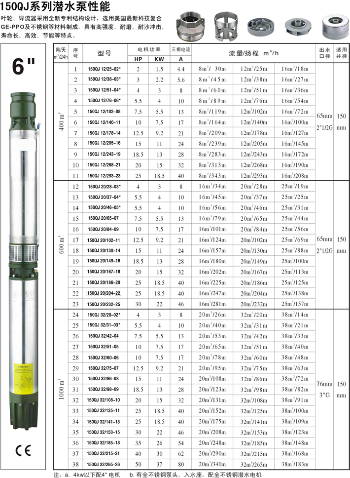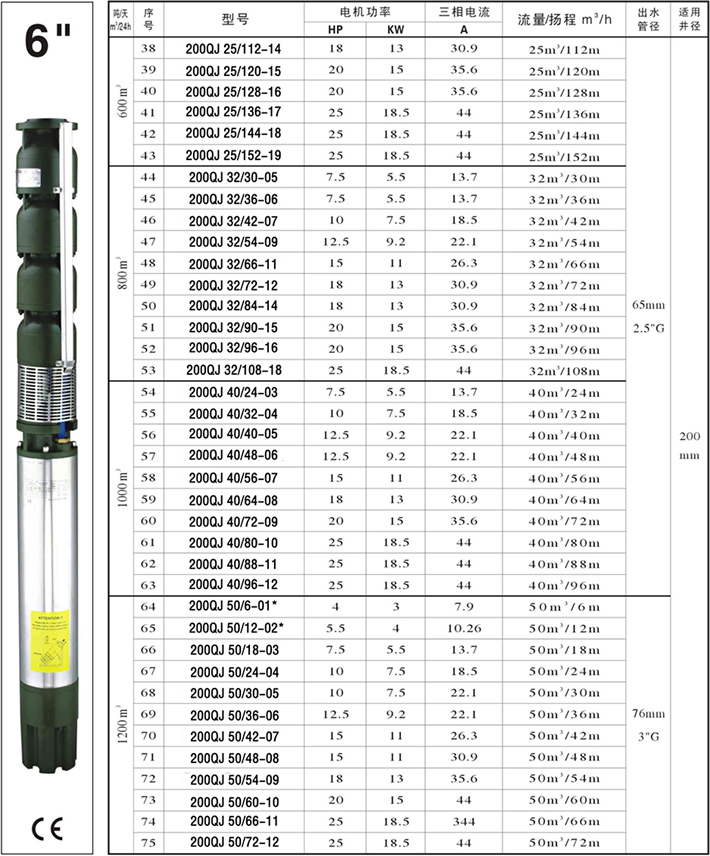 | 150m3 | 30 | 100QJ6-28/6 | 1 | 0.75 | 4.8 | 2.5 | 4/36 | 6/28 | 7/20 | ||