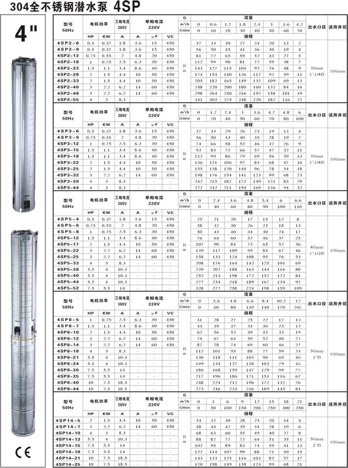 | 100m3 | 20 | 100QJ4-30/6 | 0.75 | 0.55 | 4.8 | 2 | 3/3 | 4/30 | 5/22 | 40mm | |